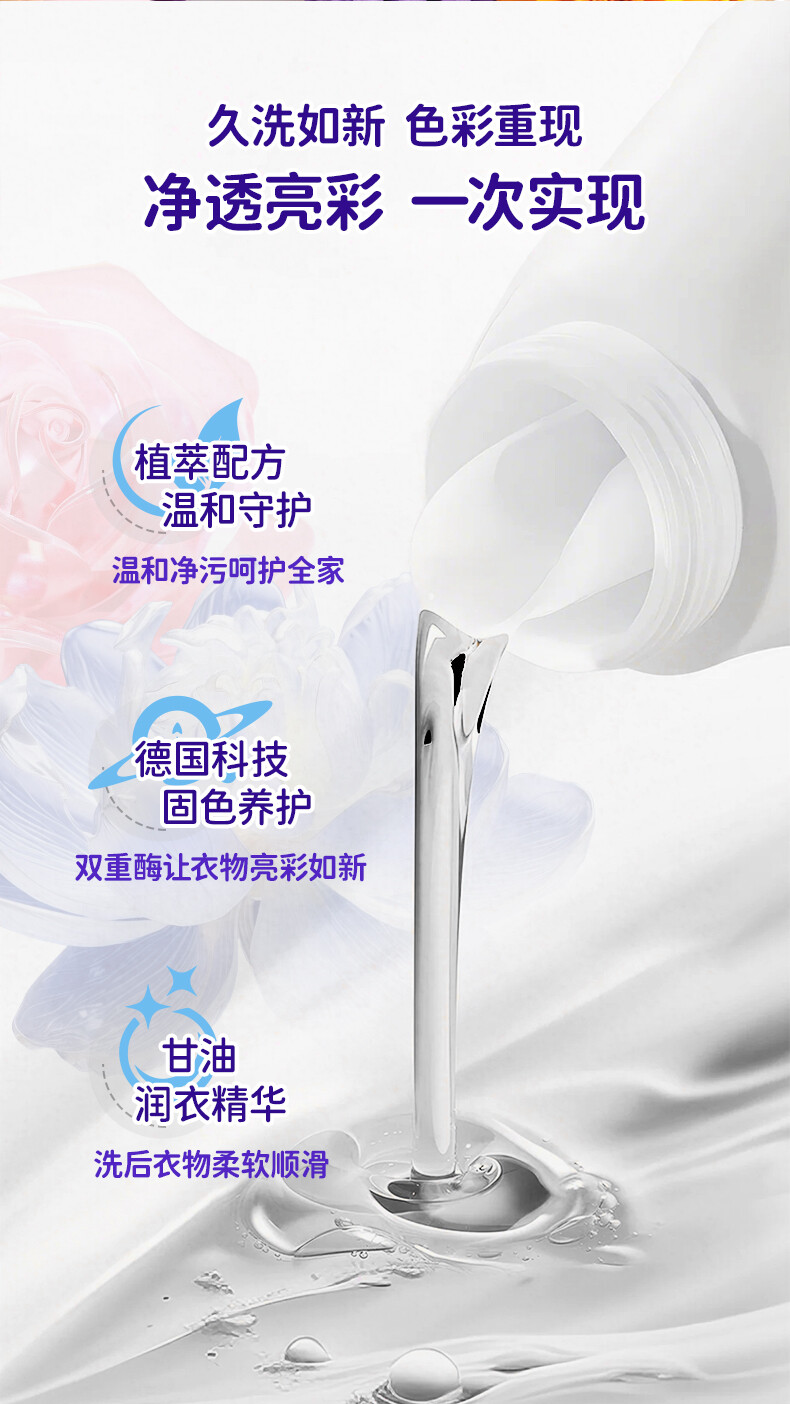 容量:白云雪山净白酶洗衣液、雨后彩虹护色去毛球洗衣液1kg;超强潔力有機磷酸洗衣液3kg;