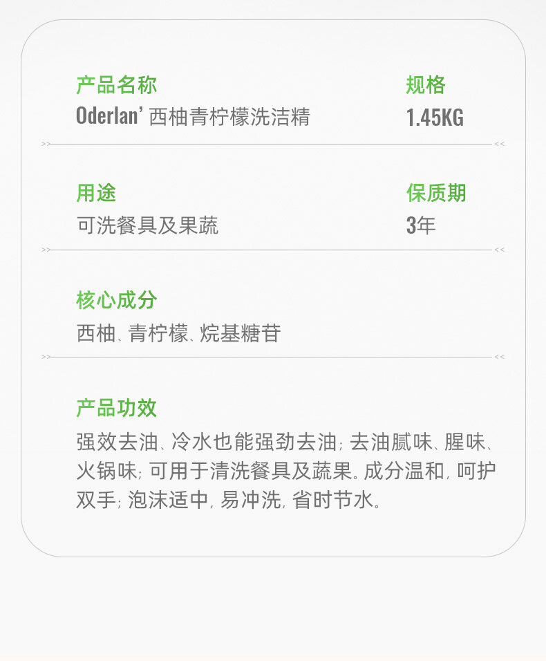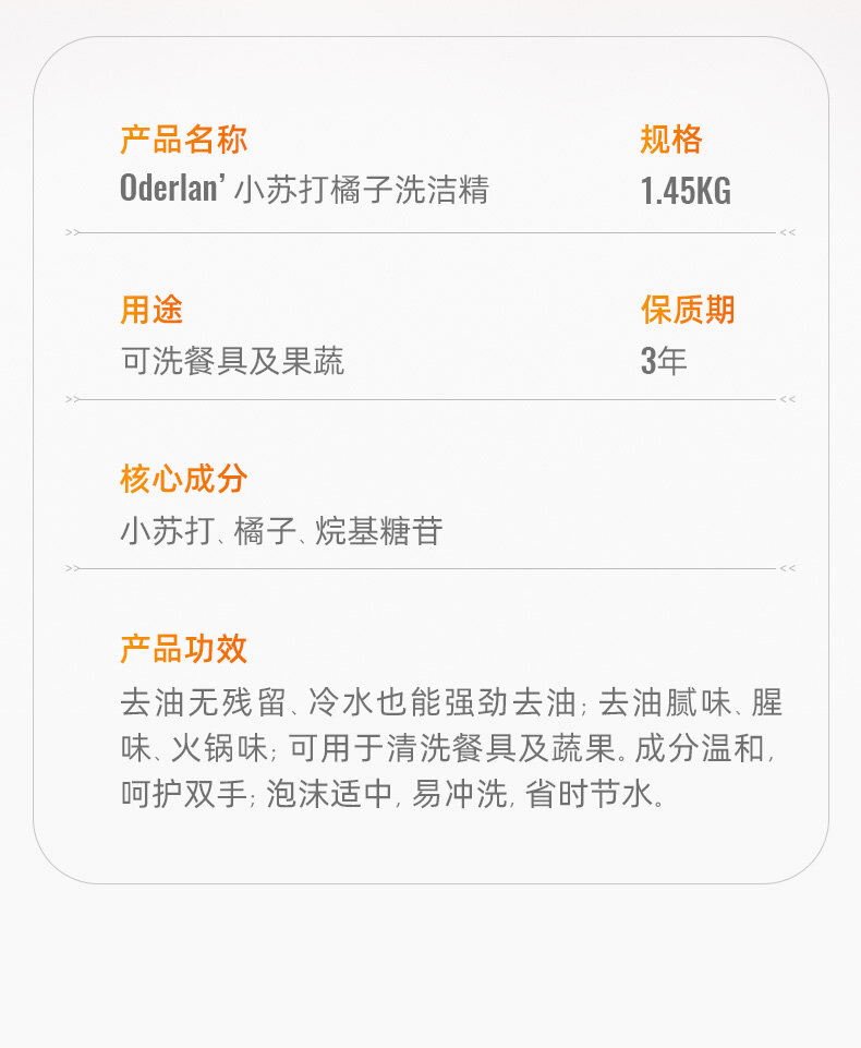 容量:Oderlan洗洁精1.45KG;