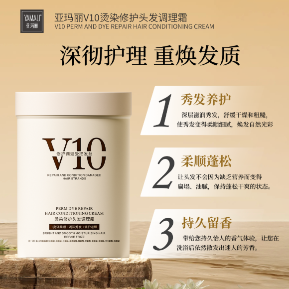 维生素原B5+蛋白质成分,修护烫染发丝,为秀发提供所需水分,使发丝亮泽顺滑,补充所需精华,改善干枯秀发修护毛躁,柔和呵护发丝,润泽保湿,镇住水份,润泽秀发,令发丝柔润顺滑,飘逸自然