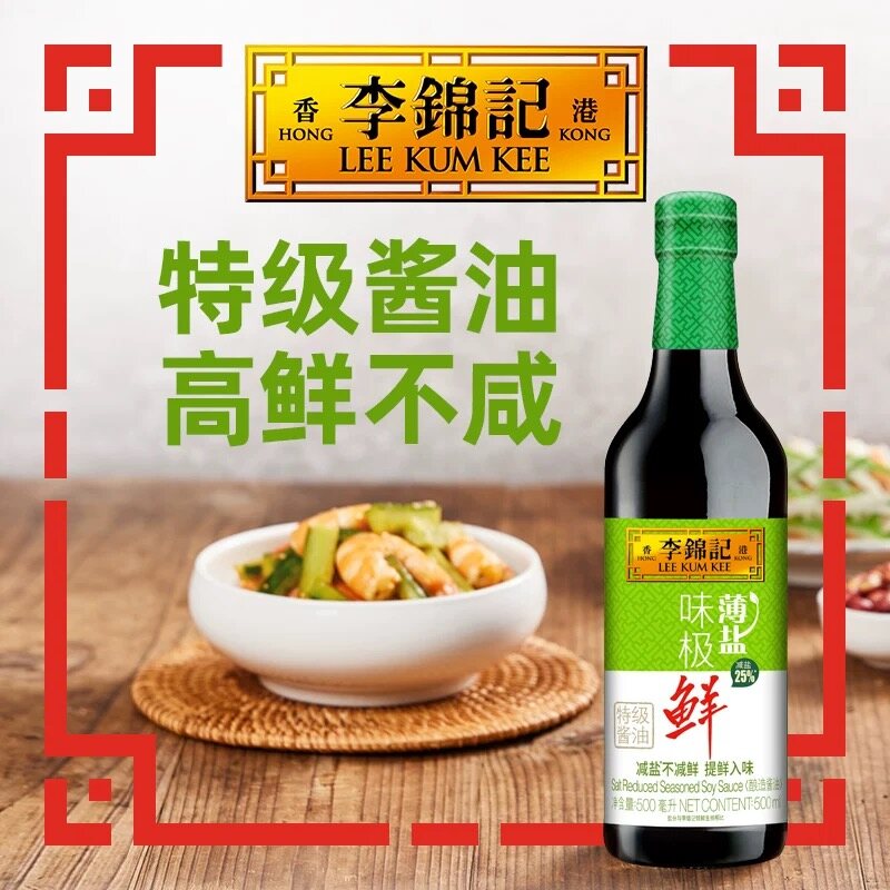 李锦记薄盐味极鲜500ML:26994KG/柜;