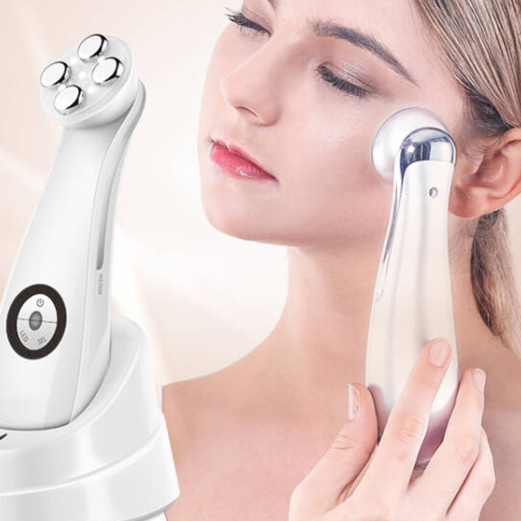 频率:x EMS:91kHz;x RF:300kHz;x EP:100kHz。自动关机:10分钟。电池/充电时间:112448x2 并联/3.7V/1300mAh。认证:CE、RoHS。1. LED SPA。红光(630-650nm)改善皱纹。蓝光(410-430nm)改善痤疮并保持肌肤平衡。黄光(630nm)美白肌肤。粉光提亮肤色。脉冲粉光:增强护肤品的吸收。所有光组合:全面护理。3. EMS高频微电流波刺激大脑产生无意识的肌肉运动,优化皮肤微循环,温热肌肤,提拉紧致肌肤,焕发活力。4. 射频 (RF)加热并激活皮肤胶原蛋白,有助于提拉紧致肌肤,减少皱纹。5. 电穿孔 (EP):促进营养物质渗透。