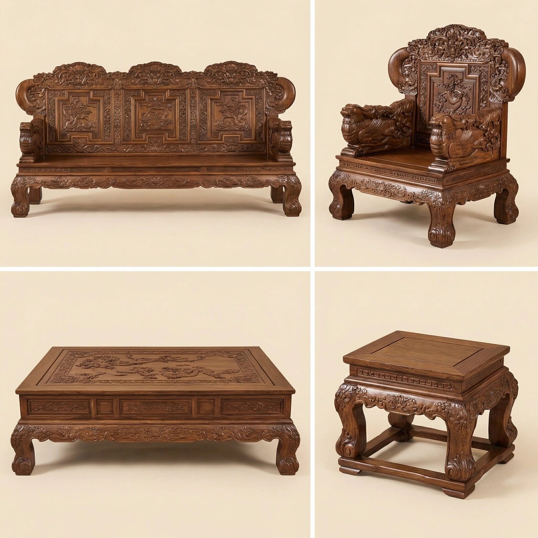1×三人座,4×单人座,1×大平几,2×花几,2×高几,2×小凳,1×炕几